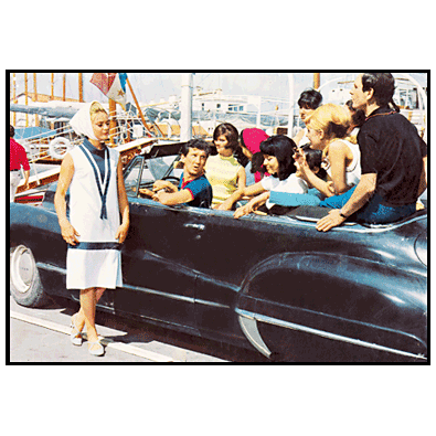 sur le tournage du Gendarme de Saint-Tropez. Debout,